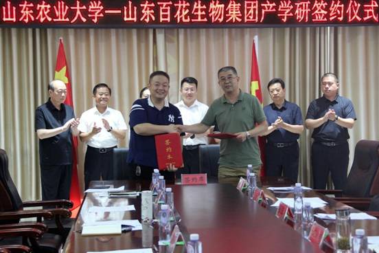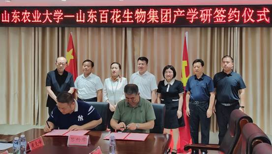熱烈慶祝山東百花生物集團有限公司與山東農(nóng)業(yè)大學(xué)簽訂產(chǎn)學(xué)研合作協(xié)議